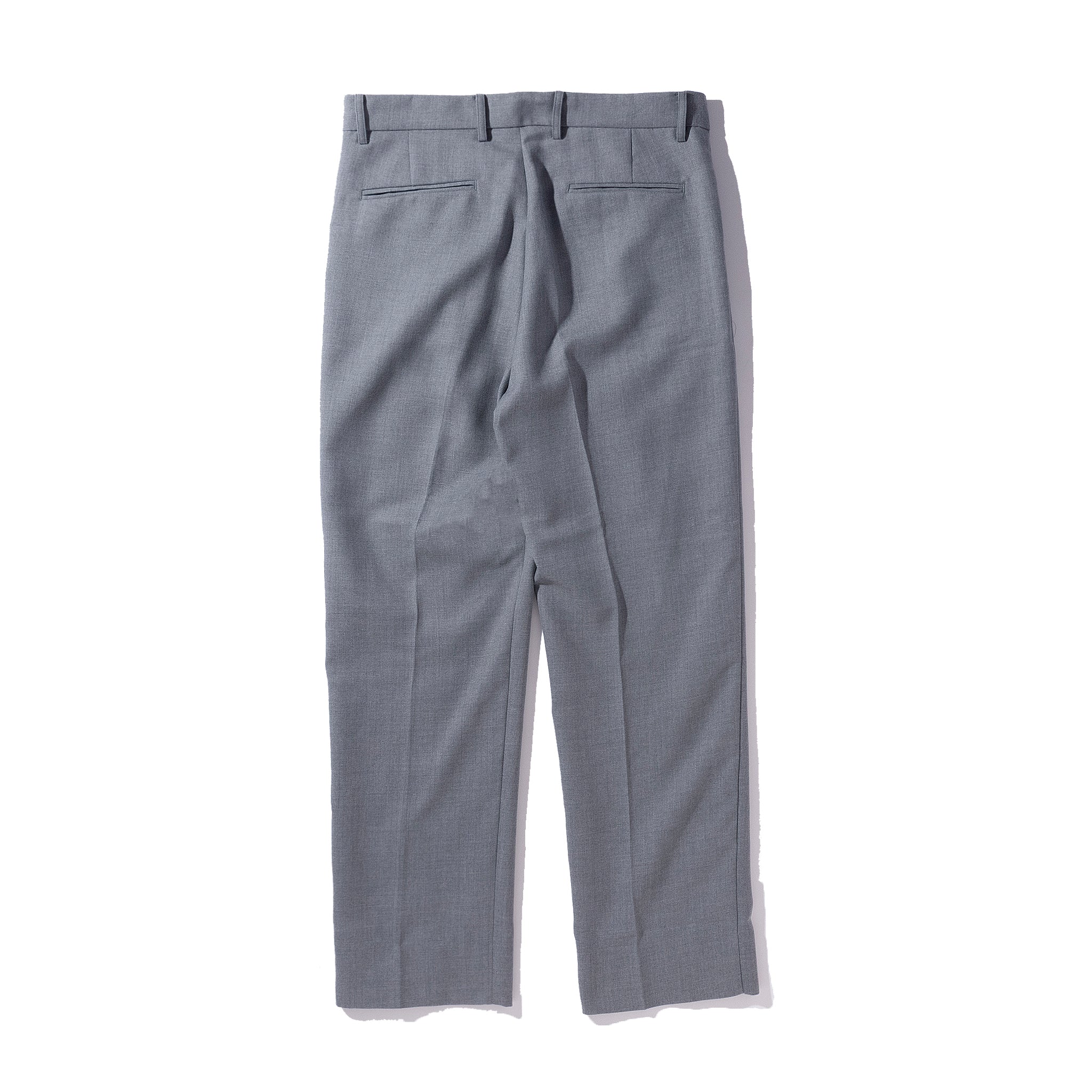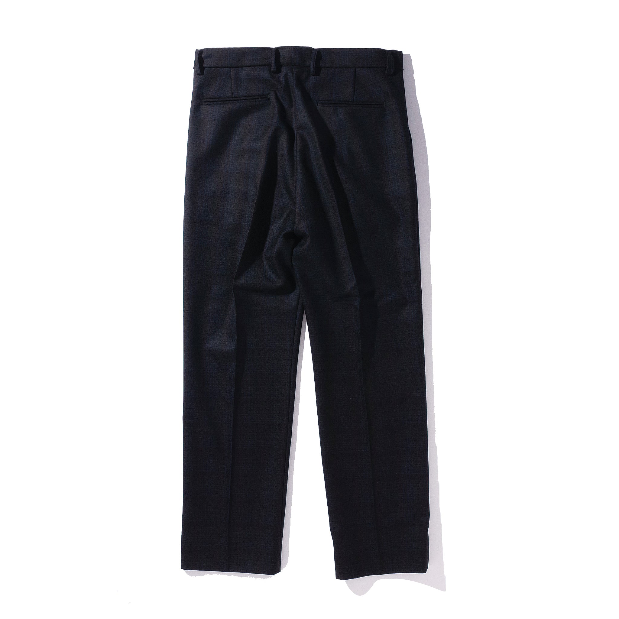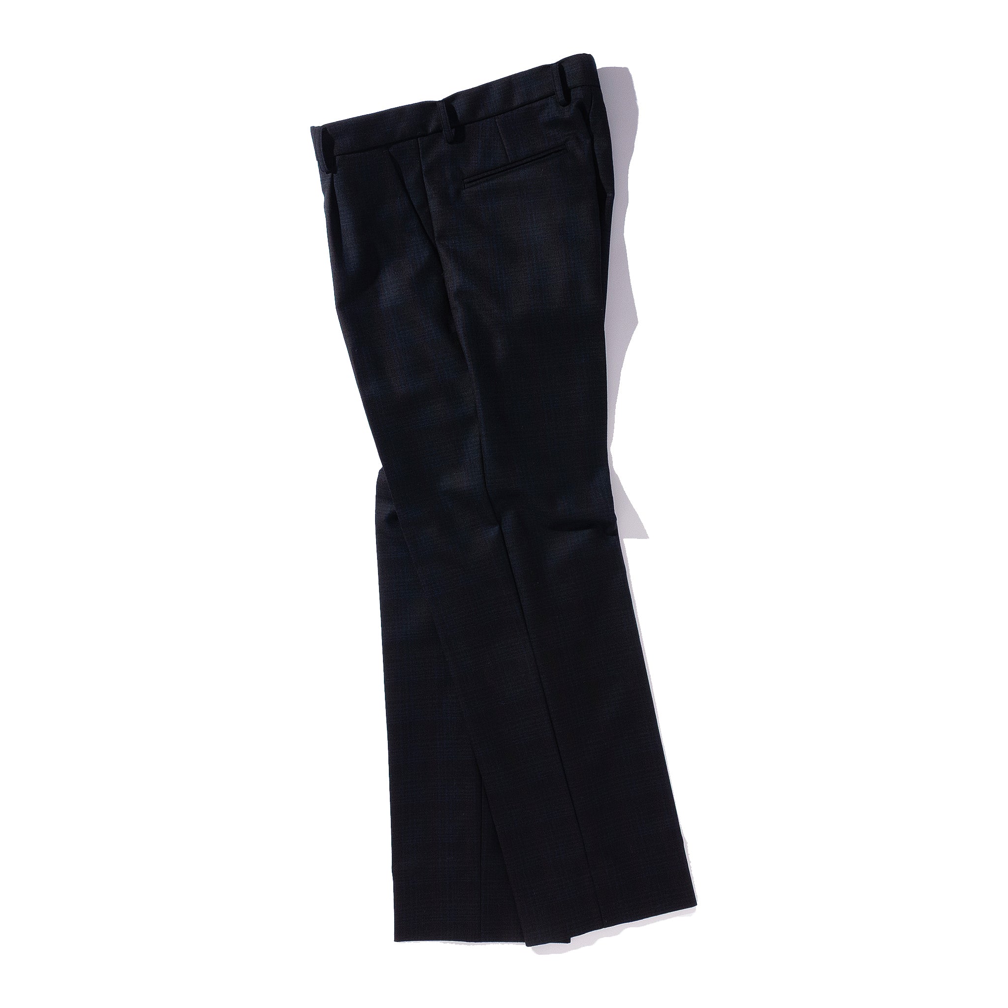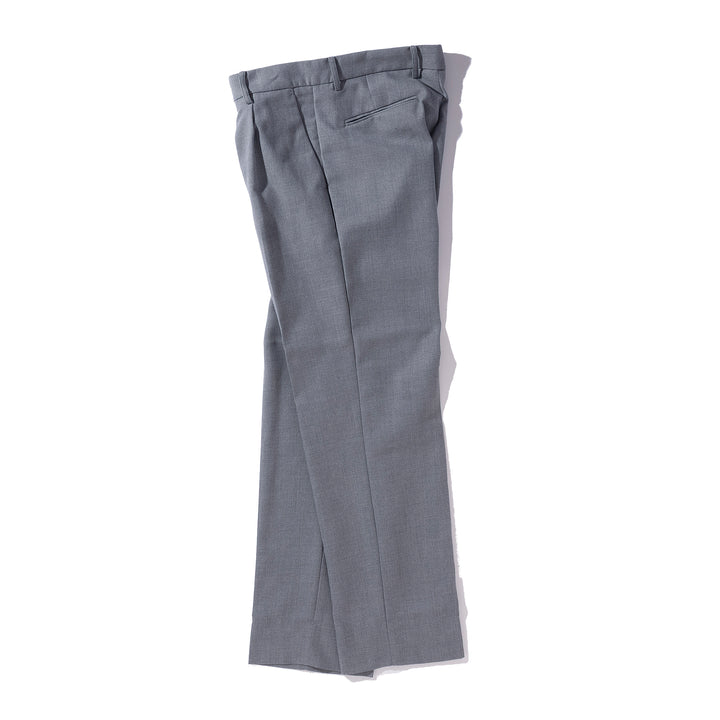 デッドストックのフランネルウールを使用したスラックス。柔らかな起毛感と奥行きのある色合いが特徴で、上品な落ち感がありながら型崩れしにくい素材です。クラシックなトラウザーをベースに、わずかにゆとりを持たせたストレートシルエットに仕上げており、幅広いスタイリングに対応します。